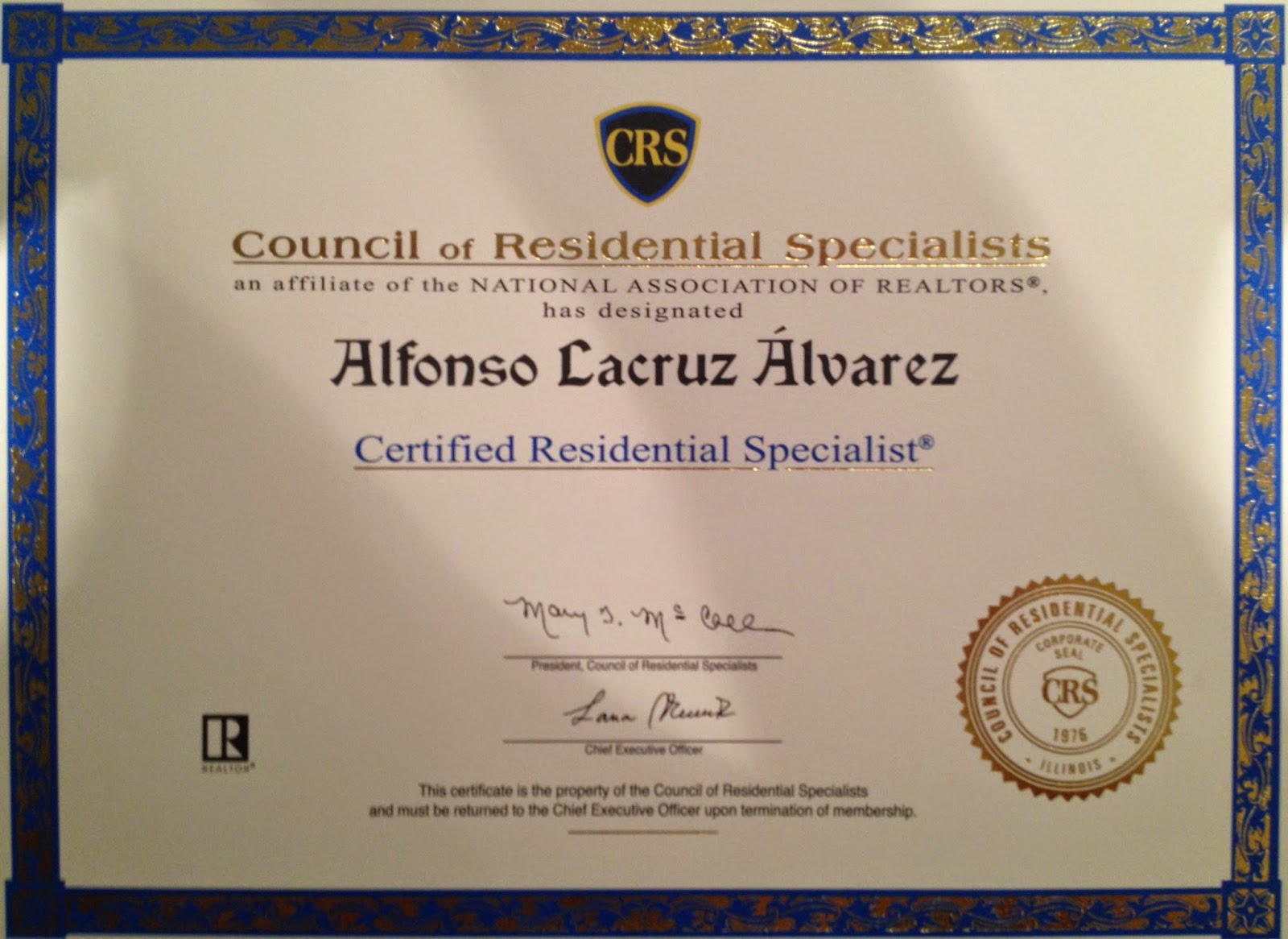 - Council of Residential Specialist Designation (CRS) - 2013